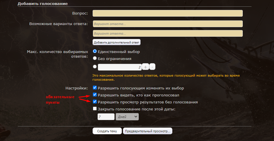 кто подскажет как сделать тему с голосованием на два вида?